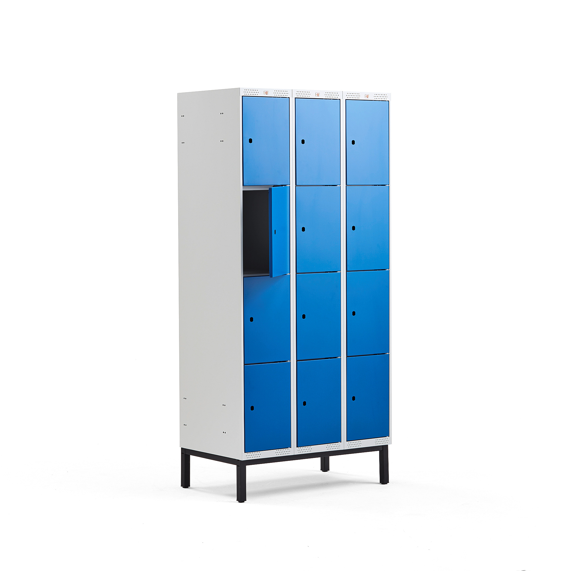 Strona główna » Szafki Fitness » Szafy » Szafki osobiste » Szafa Schowkowa Classic, 4 Schowki W Pionie, Na Nóżkach, 3 Moduły, 1940x900x550 Mm, Niebieski