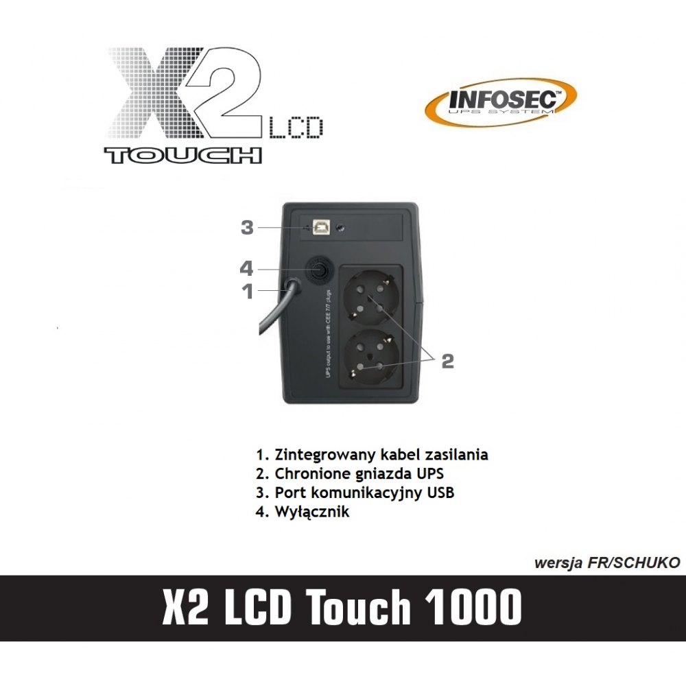Zasilacz Awaryjny Ups 1000va Lcd Touch 1000 Infosec 2xschuko